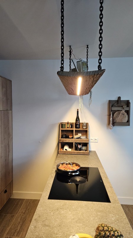 Zoekt u een bijzondere duurzame lamp voor boven uw eettafel, vergadertafel, bureau of balie? Kies dan voor onze prachtige houten plankhanglamp! Ook erg mooi als hanglamp voor het kookeiland! Ben u op zoek naar een mooie lamp om uw kantoor sfeervol in te richten? We kunnen in de lamp ook een lichtstrip maken met kleurtemperatuur van 4000 k (kantoorlicht).