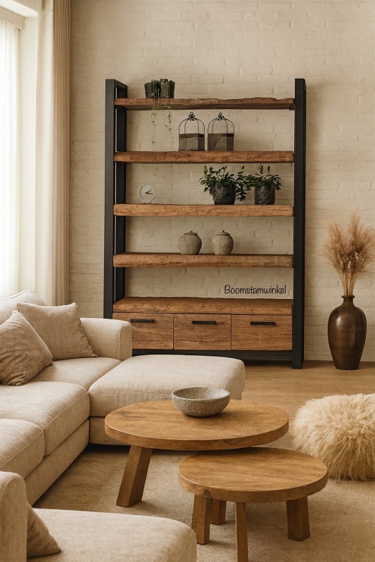 Met onze robuuste stijlvolle open Nature kast voegt u niet alleen karakter toe aan uw interieur, maar ook praktische opbergruimte met een vleugje elegantie. Neem contact met ons op om uw droomkast op maat te bestellen en uw ruimte te verrijken met dit unieke meubelstuk.
