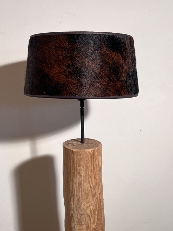 Dit is de lampenkap 'Cato'. Hij is vervaardigd uit koeienhuid en heeft een diameter van 40 cm aan de onderkant gemeten. De bovenrand van de lampenkap heeft een diameter van 35 cm. De totale hoogte van de lampenkap bedraagt 20 cm.