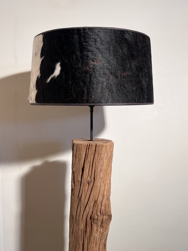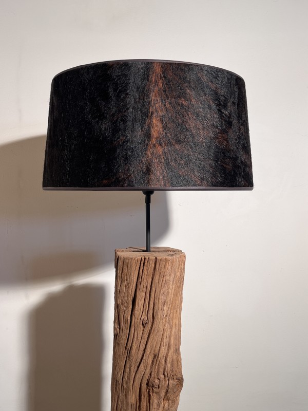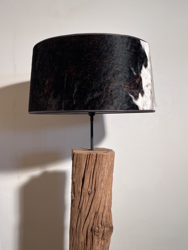 Deze lampenkap genaamd 'Neeltje' gemaakt van koeienhuid, is werkelijk opvallend. Hij heeft een diameter van 55 cm aan de onderkant gemeten, terwijl de bovenrand een diameter van 50 cm heeft. De totale hoogte van de lampenkap is 28 cm.