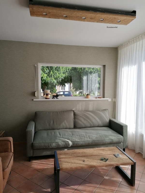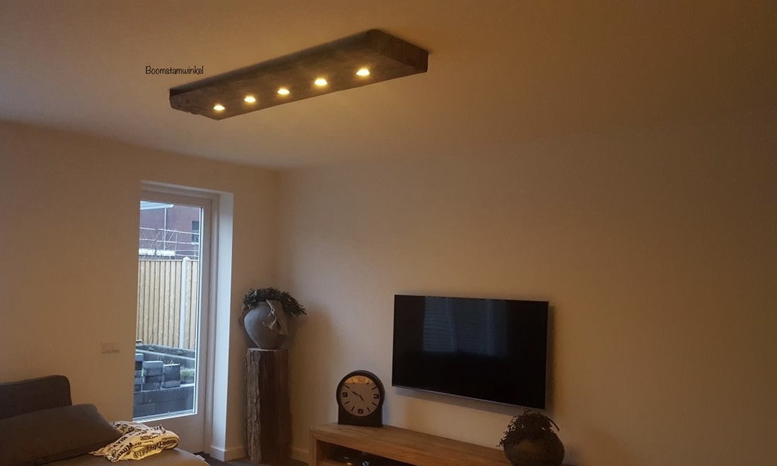 Een keer wat anders dan anders... Prachtige plafondlamp gemaakt van meerpaalhout.