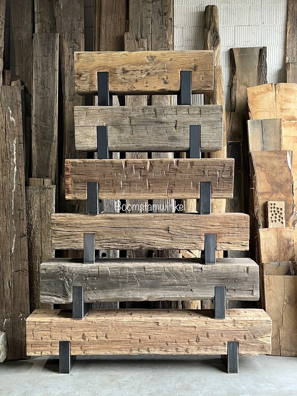 De afmetingen van dit meubel zijn afhankelijk van de doorsnede van de meerpaal die wordt gebruikt. We streven naar kwaliteit en daarom selecteren we de dikste palen om uw meubel te maken. Dit resulteert meestal in een diepte van 30-36 cm en een hoogte van 42-48 cm. De poten worden gemaakt van staalkoker 100x100mm.