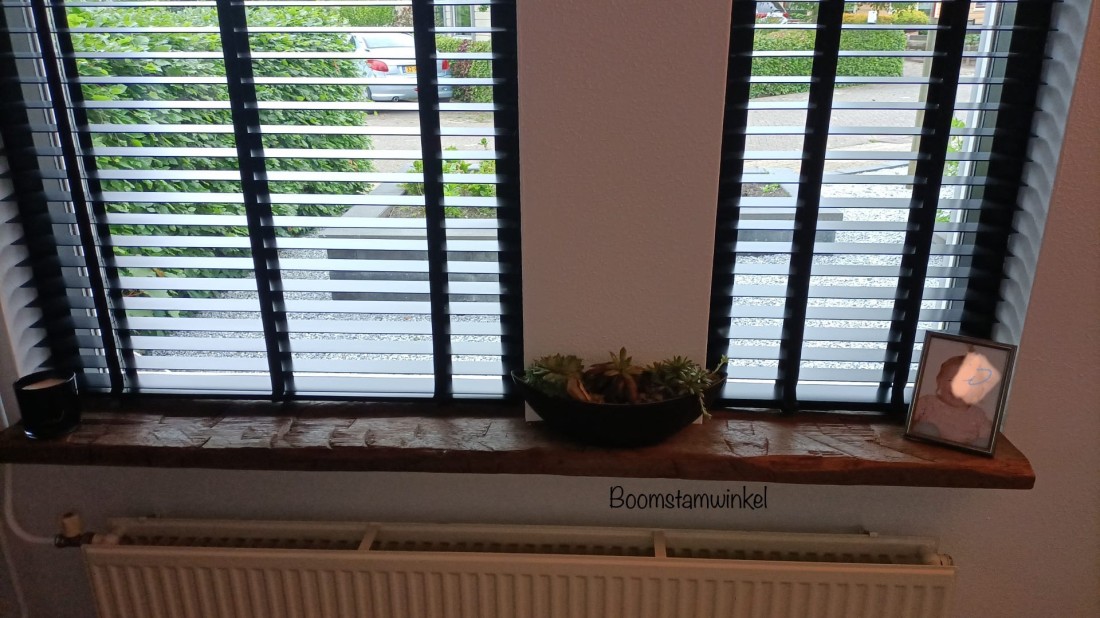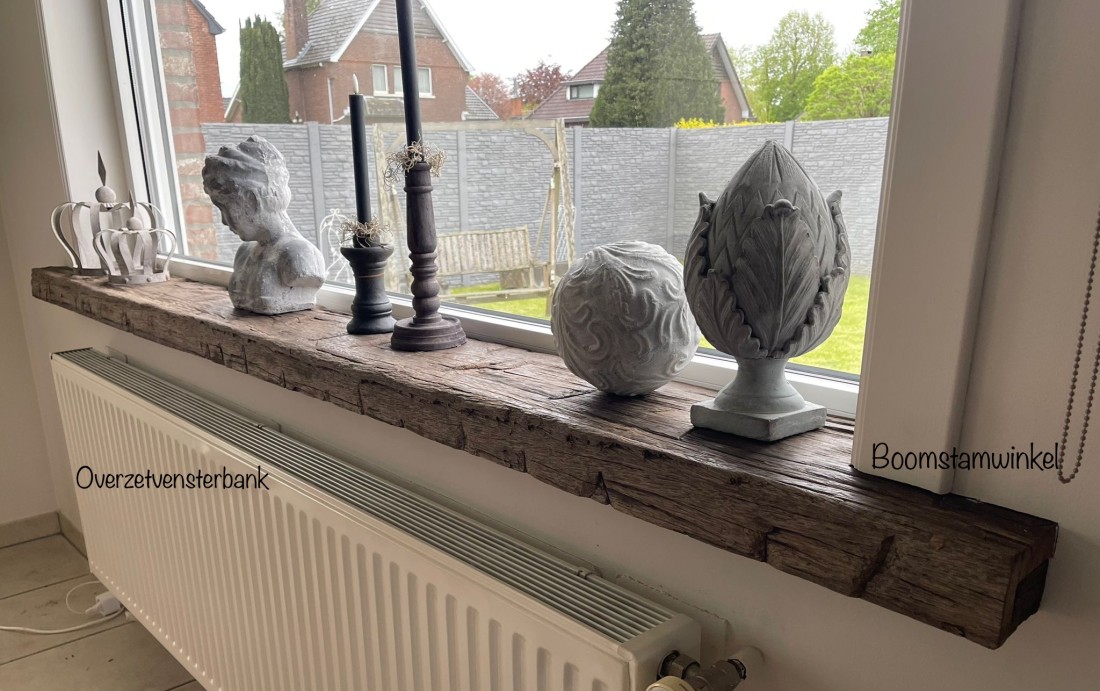 Houd er rekening mee dat onze planken zijn gemaakt van gerecyclede meerpalen die uit het water worden gehaald. Het zagen van planken gebeurt niet altijd op de millimeter precisie, wat betekent dat de planken niet overal dezelfde dikte hebben. Dit kan resulteren in vensterbanken waarvan de dikte aan de ene kant bijvoorbeeld 3 cm is en aan de andere kant 4 cm. Bij langere lengtes kan dit verschil zelfs groter worden. De diepte van de plank kan ook variëren in dikte, bijvoorbeeld 4 cm aan de voorkant van de plank en 3 cm aan de kant van het raamkozijn. Soms kan het verschil slechts 1 cm zijn, soms minder, en heel soms meer. Waar het om gaat is dat u beseft dat het geen strakke plank is. Het is prachtig, maar niet perfect...