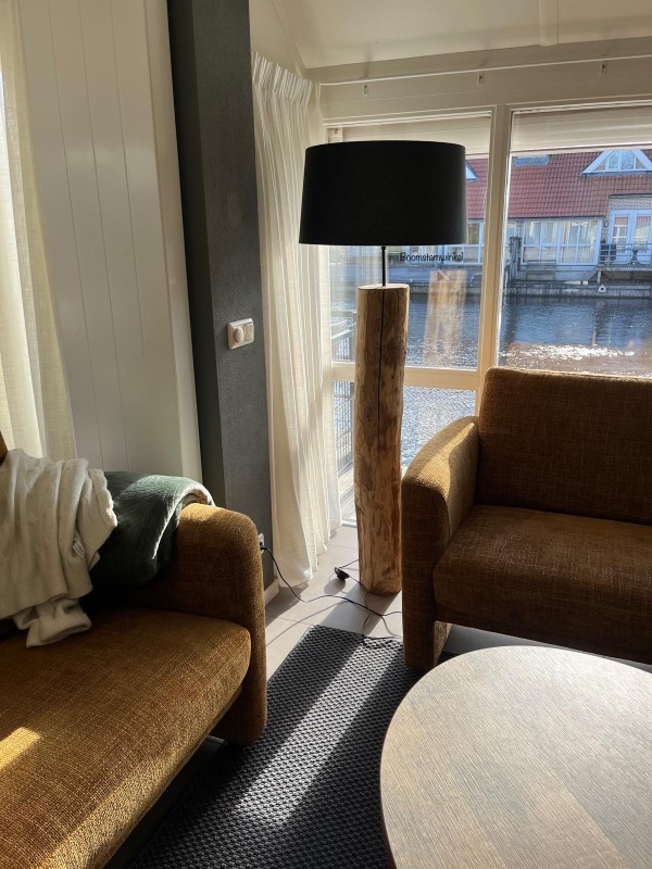 De doorsnede van de stam varieert tussen de 13-15 cm. De lengte is 135 cm tot bovenzijde fitting. Wilt u een andere maat? Neem dan contact met ons op! De lamp heeft bij de fitting een stelgewricht waardoor de kap altijd recht staat. U zult bij onze lampen geen bedrading zien aan de buitenkant van de stam. De lamp is helemaal doorgeboord, de kabel loopt door de stam.