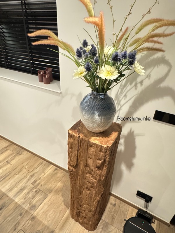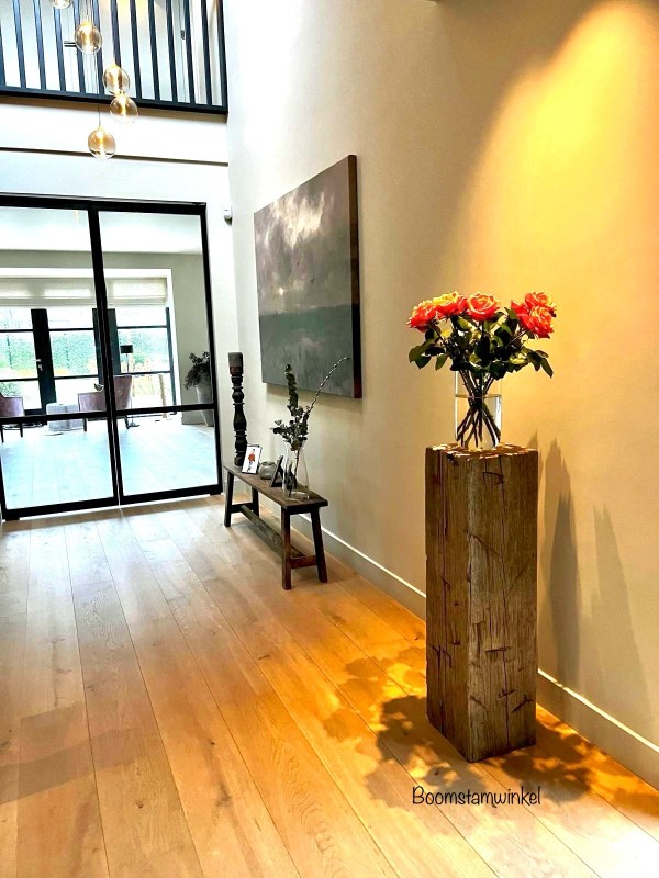Een eyecather in uw interieur! Stoere sokkel van een meerpaal gemaakt. We maken de zuilen eerst goed schoon en borstelen daarna het hout. De boven en onderkant wordt vlak gemaakt zodat u verzekerd bent van een stevige zuil! Doorsnede ongeveer 27-30 cm.